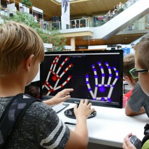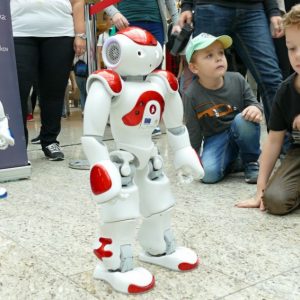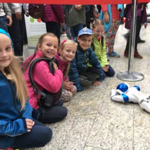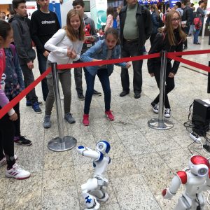 V stánku s názvom „Veda hrou“ sme predstavili 58 centimetrov vysokého humanoidného robota NAO, ktorý je malá „osobnosť“ s unikátnou kombináciou hardvéru a softvéru. Je samozrejmosťou že dokáže chodiť, zdvíhať zo zeme predmety a naučí sa aj tancovať, či hrať futbal. Je hviezdou vo vzdelávaní vo viac ako 70tich krajinách sveta. Využíva sa na hodinách informatiky od základných škôl až po univerzity. Študenti sa na ňom môžu učiť programovanie v zábavnom a praktickom prostredí.