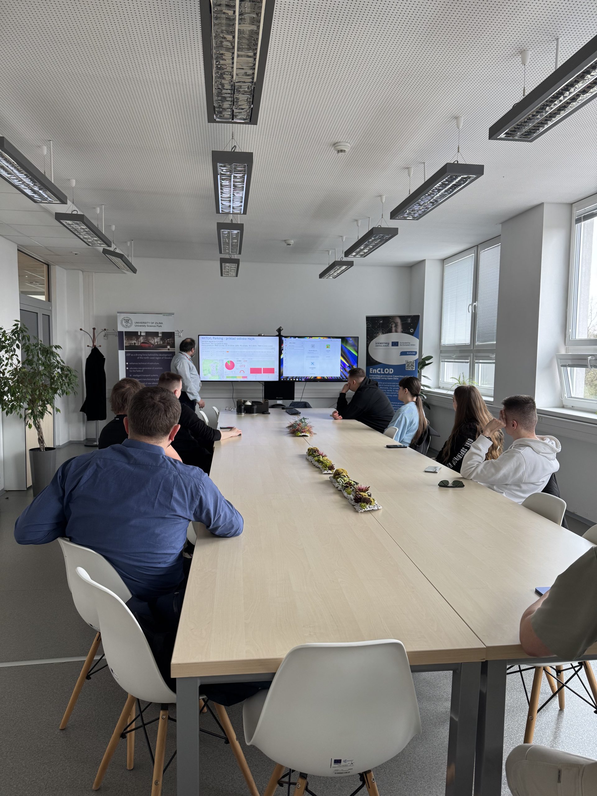Študentom sme predstavili cestu od IoT dát k priestorovým analýzam, ktoré slúžia ako kľúčový podklad pre podporu politiky moderného mesta. Okrem pútavej prezentácie mali možnosť vidieť aj praktickú stránku fungovania senzorových sietí v reálnom prostredí Žiliny.